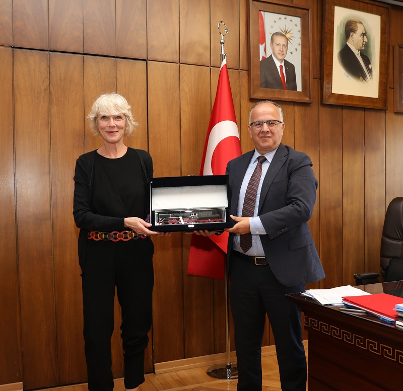 In the first meeting Hasan Pezük, the Director General, accompanied by Safi Çatal, the Head of Strategy Development, welcomed the UIC delegation consisting of Sandra Géhénot, the Freight Director, Philip Van den Bosch, and Hakan Günel both Senior Freight Advisors to TCCD Taşımacılık. Pezük updated the UIC delegation on the important strategic initiatives that TCDD Taşımacılık is undertaking to increase rail freight’s modal share in the near future. He also stressed how important the long-standing partnership with UIC is. Géhénot thanked Pezük for the kind welcome and outlined UIC’s and the Freight Department’s current strategic focus areas. She mentioned supporting UIC freight members in implementing digital game changers such as the DAC, the Digital Platform, and digital capacity management. She also gave information on setting up a strong regional (RAME) group with a specific focus on freight and logistical activities while inviting Pezük and TCDD Taşımacılık to be a driving force within this new RAME freight group. The meeting was concluded with Pezük offering Géhénot a gift. The scale model of the first train to be acquired by TCDD over 160 years ago is going to be given centre place at the UIC offices.