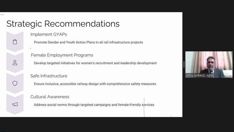 Atiq Ahmad from the Islamic Development Bank (IsDB) discussed gender mainstreaming policies and inclusive transport projects in countries such as Senegal, Türkiye, Morocco, and Pakistan. He called attention to:
