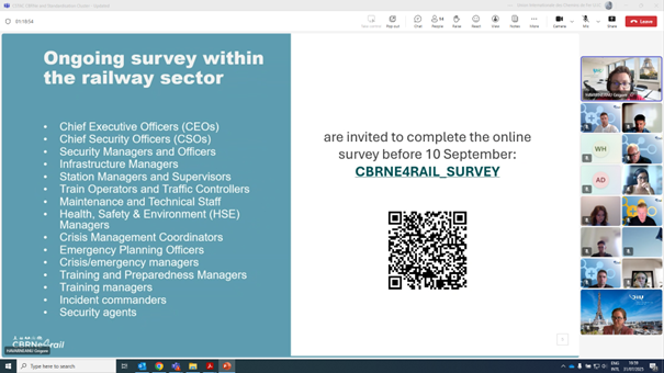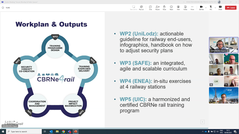 The CBRNe4rail project (CBRNe preparedness for passenger rail transport hubs), co-funded by the European Union and coordinated by the UIC Security Department, aims to enhance awareness and capabilities of railway stakeholders to effectively respond to Chemical, Biological, Radiological, Nuclear and explosive (CBRNe) emergencies at railway stations by improving their security plans and training railway staff.