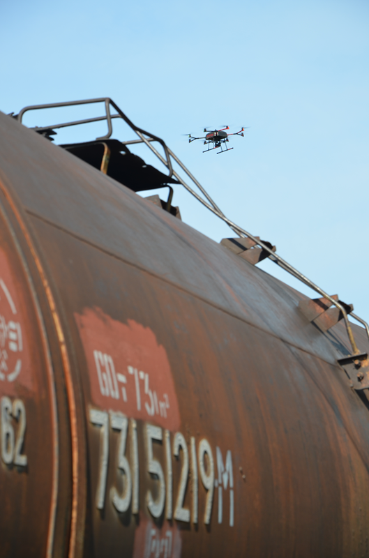 Freight train being scanned with thermal camera by ODYSSEUS UAV