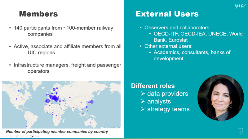 • Alice Favre, Head of Statistics, provided an overview of the UIC Statistics Platform, demonstrating how members can leverage this wealth of railway data for analysis and strategic decision-making. She outlined the types of data available and explained the process of data collection, emphasising the importance of member contributions for maintaining the platform’s utility and accuracy as a central data repository for the global rail sector.